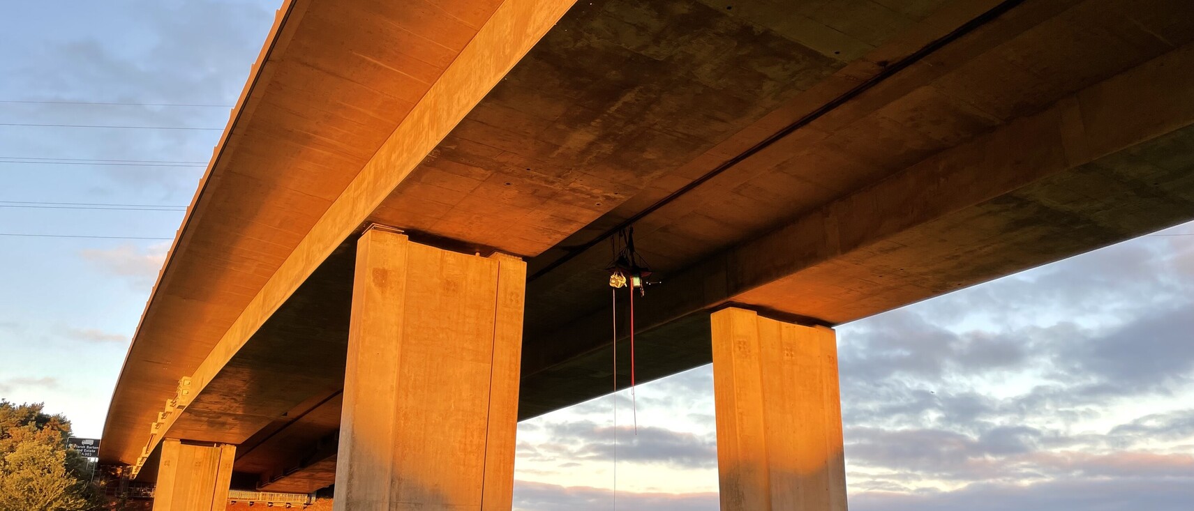 Die Brücke hat sich bewegt! Wenn schwere Laster kamen, wurde der Riss erst enger und dann wieder breiter. Das war wirklich superseltsam. Man klemmt seine Hand rein, der Riss zieht sich zusammen und das fühlt sich erstmal gut an. Aber wenn der Riss dann wieder weiter wird - Das ist dann gar nicht mehr gut! Sowas habe ich noch nie erlebt. Aber unsere Sicherungen haben trotzdem die ganze Zeit gehalten.